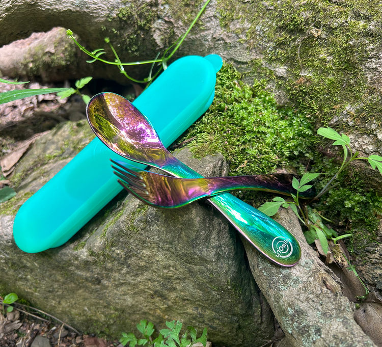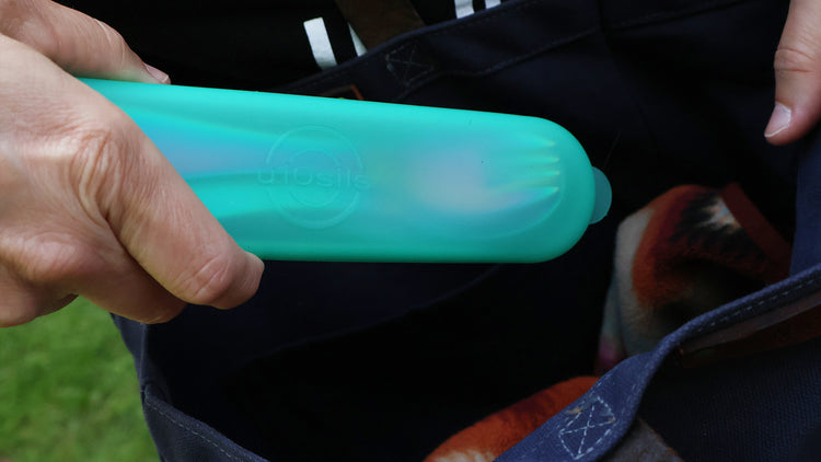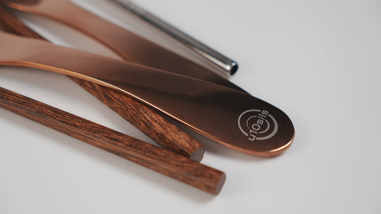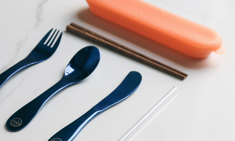 Experience the modern convenience of u10sils' premium dishwasher-safe cutlery and case set. Cutlery the same size as the plastic stuff but crafted from high-quality stainless steel designed with wide handles and satisfying curves. An innovative case that leverages the stretch from a silicone lid to lock, keeping your cutlery secure and your bag mess-free.
